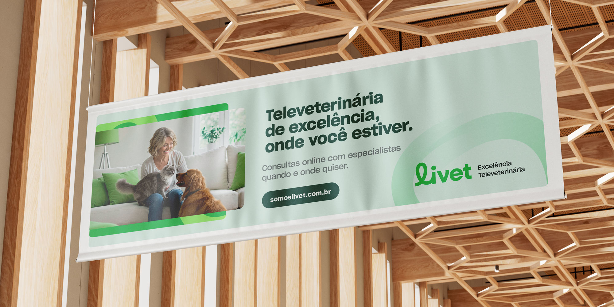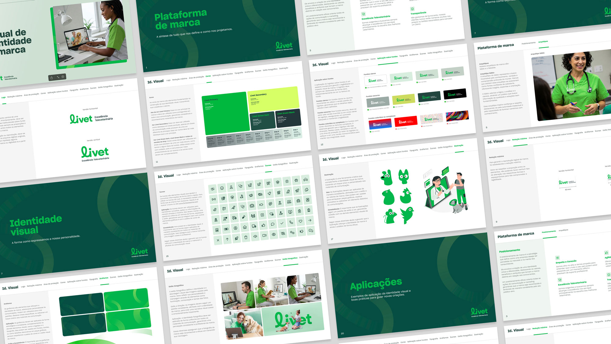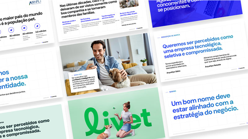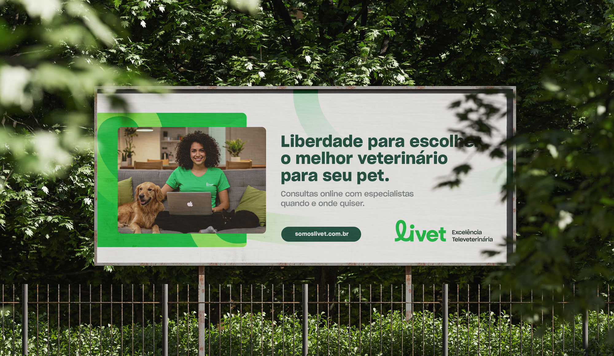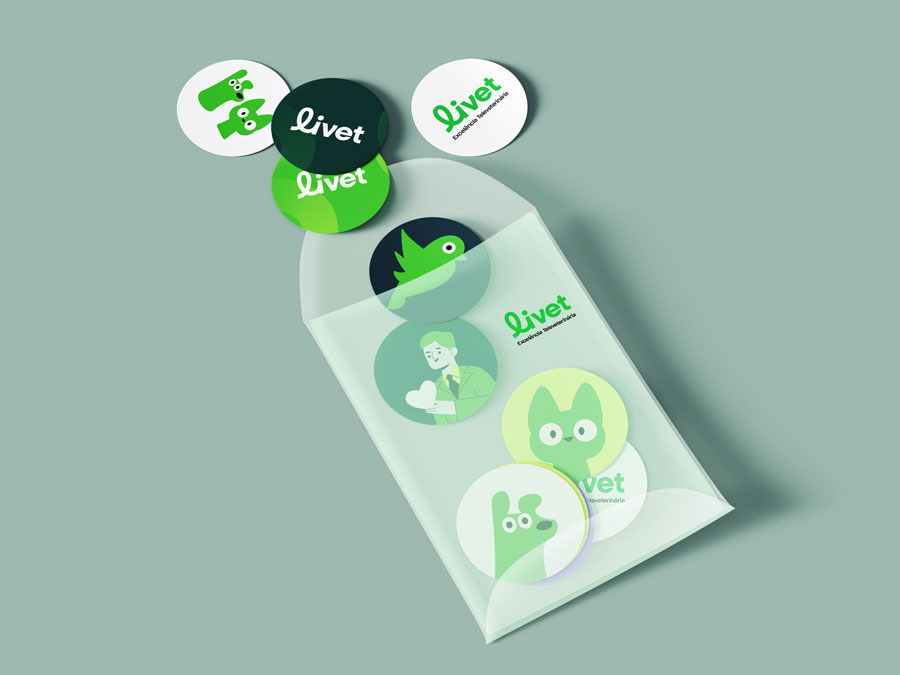 Criamos o nome Livet, uma fusão de live (vida, ao vivo) com vet (veterinária). Juntas essas palavras remetem ao atendimento ao vivo e personalizado e próximo que a Livet tem com cada pet. Toda a personalidade da marca foi criada refletindo a sua cultura e comunicando ao mercado os seus diferenciais.