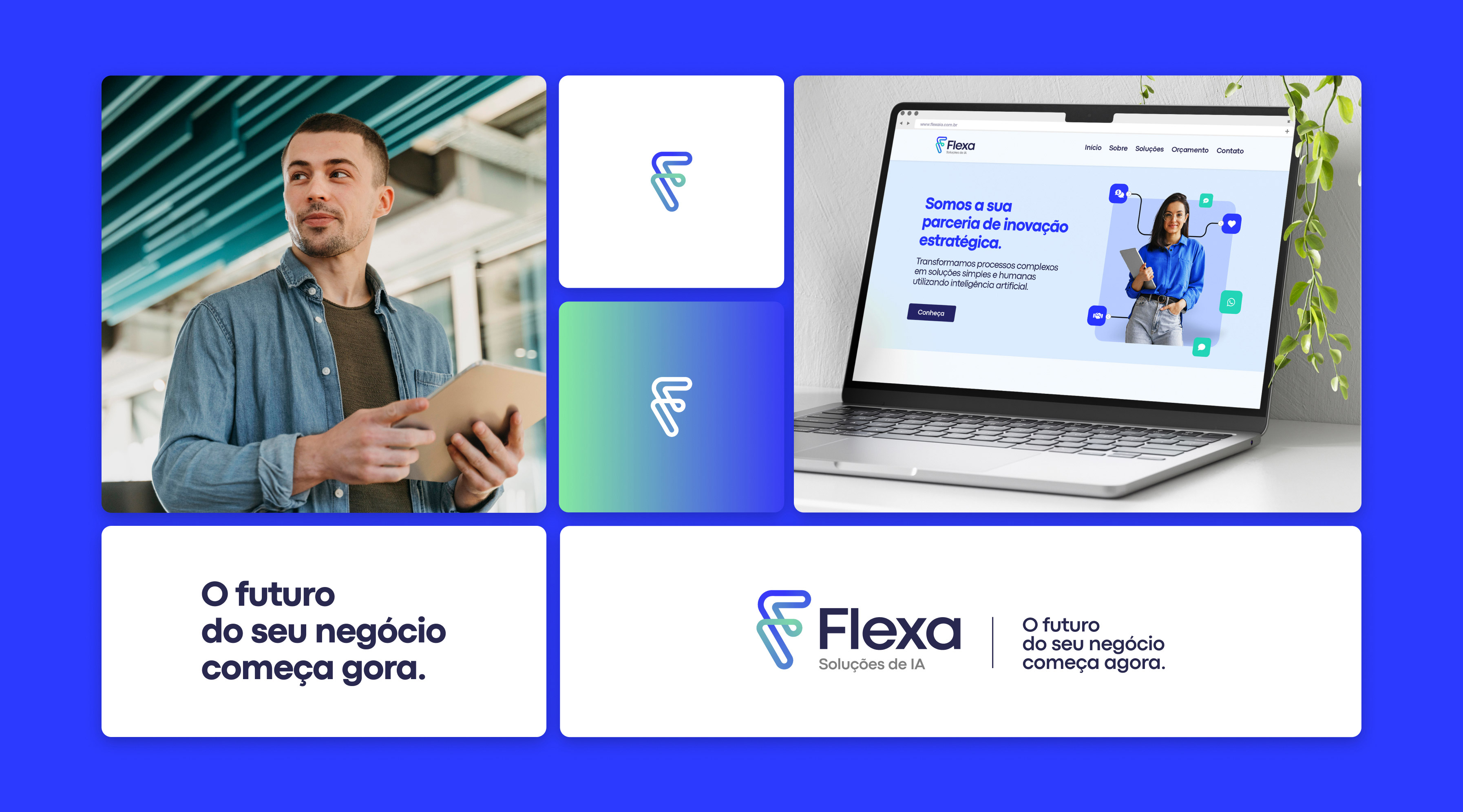 Quando a Flexa nos procurou, estava em um momento inicial de definir quais eram os seus serviços e a imagem que desejava projetar no mercado. Durante o processo, trabalhamos juntos para chegar a essas definições e construir uma identidade única e consistente.